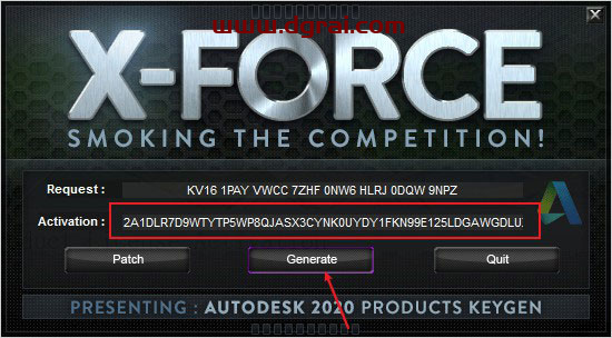 17、将之前复制好的申请号复制到注册机Request中,再点击Generate得到激活码