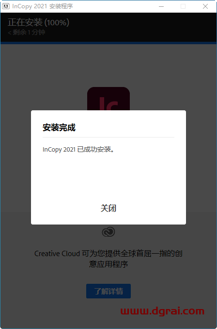 4、安装成功后点击关闭即可,打开软件就已经学习成功,可以开始使用了