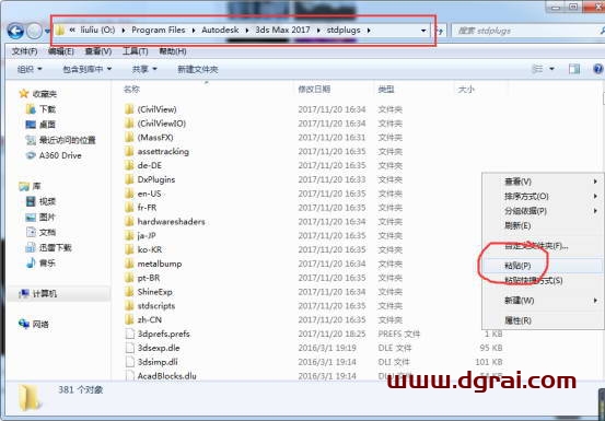 粘贴到3dmax2017安装目录下的plugins文件夹里面。 如图一十四。