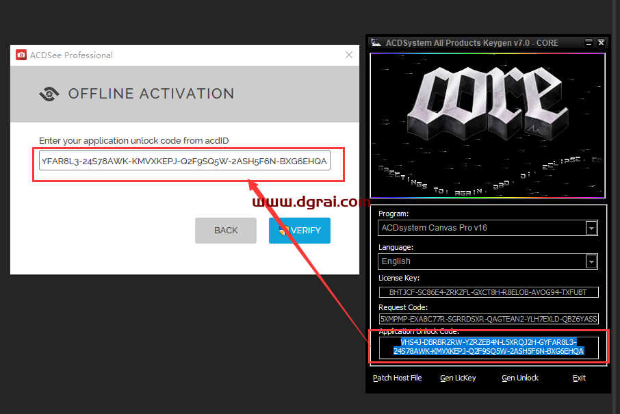 16.将注册机生成的Application Unlock Code复制到软件,点击VERIFY