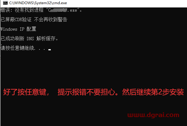 - 会自动执行cmd命令,完成之后,按任意键即可退出