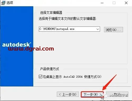 4、CAD2004 安装向导界面,在安装向导界面点击“下一步”继续操作