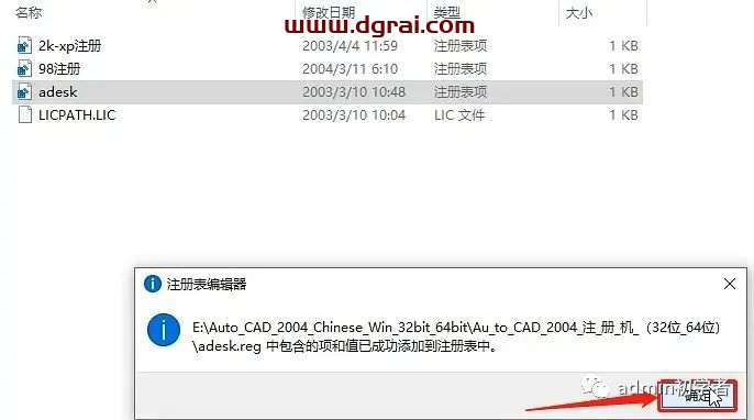 13、开始学习CAD2004中文版、在我们解压出来的文件里面找到“注册机”打开 双击“adesk”点击“是” 在双击“2K-xp”点击“是” 把信息添加到注册表