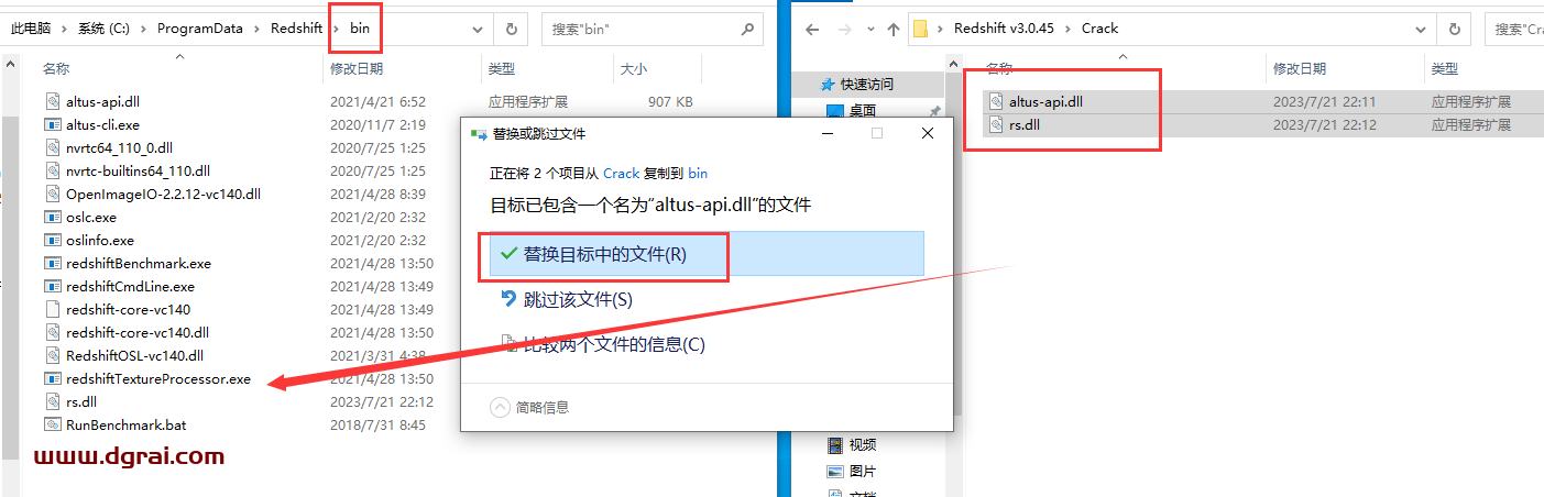 13、将Crack文件夹里面的学习补丁复制到C:ProgramDataRedshiftbin替换
