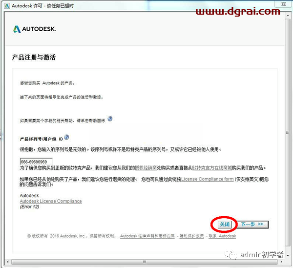 5、点击关闭,如出现提示框点击“确定”返回激活界面再次点击激活并重新输入序列号和密钥