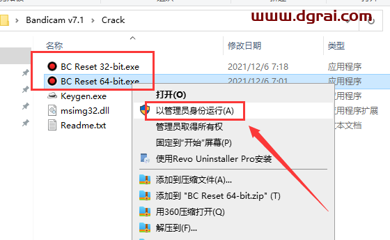 2、选择bdcamsetup_Downloadly.ir.exe软件安装程序,鼠标右键以管理员身份运行