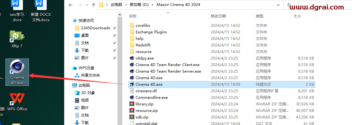 11、找到Cinema 4D.exe鼠标右键选择【创建快捷方式】
