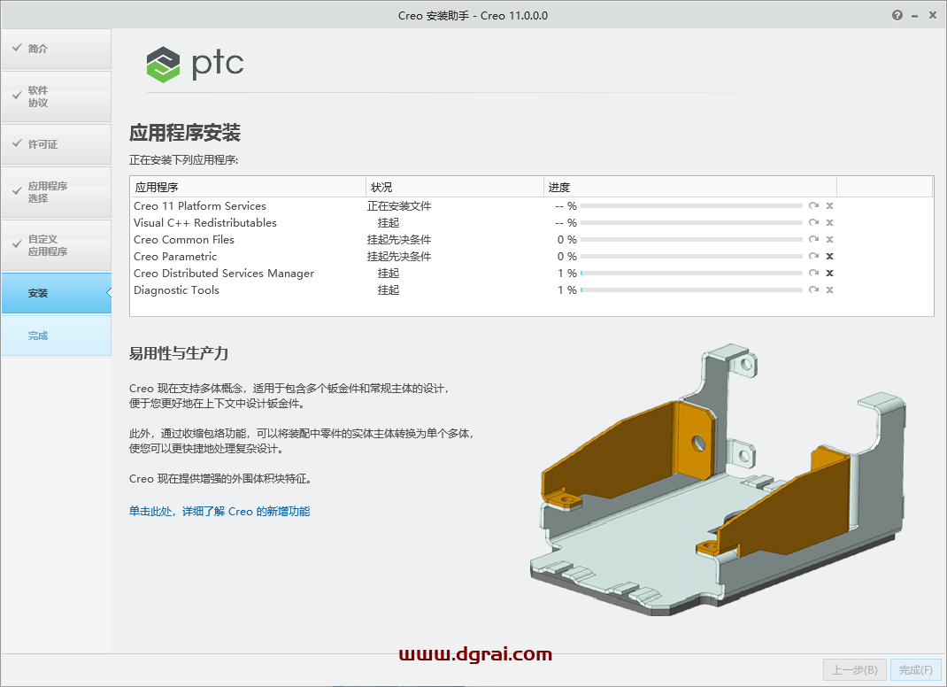 12、Creo Distributed Services Manager产品选择,将APP工具包选择,然后点击安装