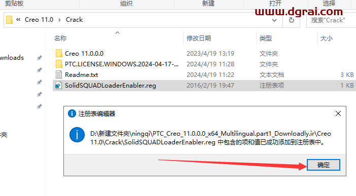 17、将安装包Crack里面的Creo 11.0.0.0文件夹复制粘贴替换到刚才后退的软件安装目录里面去