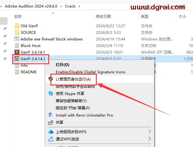 选择Genp-3.4.14.1注册机鼠标右键以管理员身份运行