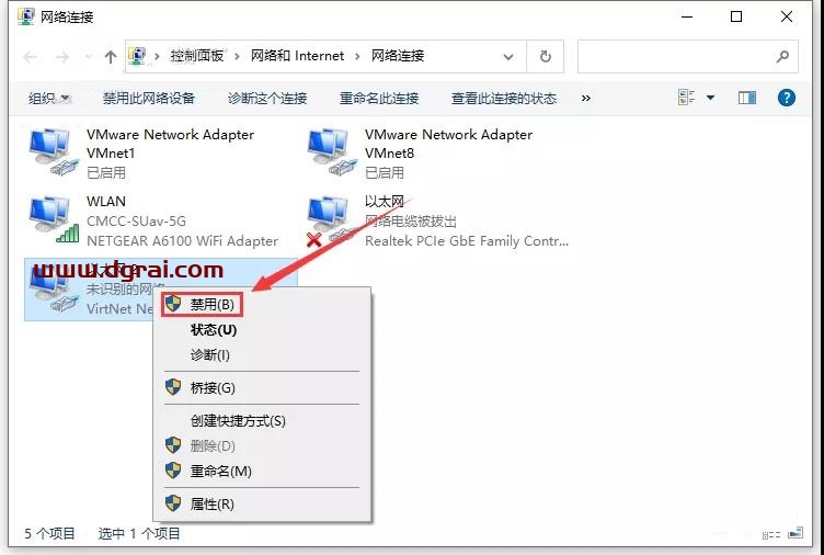 20、打开网络连接设置,在【VirtNet Network Adapter (NDIS 6.0)】上右键选择【禁用】,然后再右键【启用】