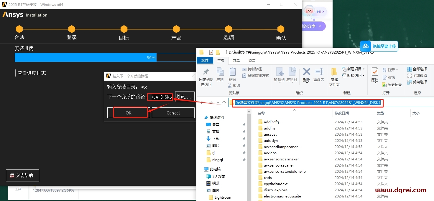 安装进度到50%,会弹出一个【输入下一个介质的路径】对话框,将界面放在一旁不要关闭