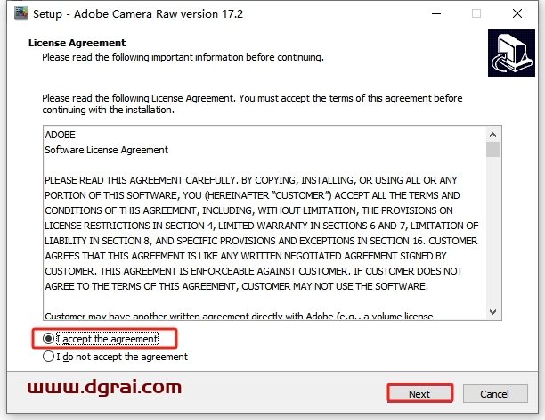 软件许可协议接受,勾选接受的选项,然后Next