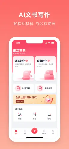 讯飞文书APP作为专业的AI写作助手,依托讯飞星火大模型技术,为各类文书写作场景提供智能化解决方案。该平台特别适合机关单位、教育机构和企业员工使用,能够显著提升写作效率和质量。