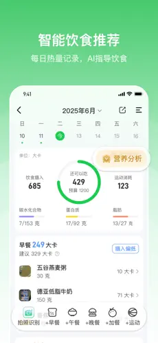 - 食物热量识别:通过拍照即可识别食物营养成分,轻松掌握每日热量摄入