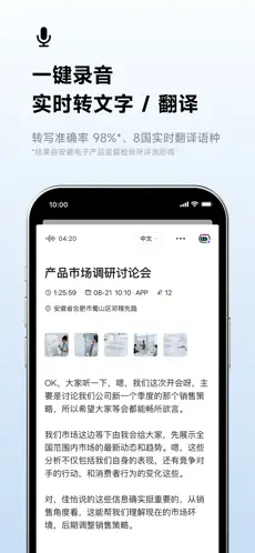 - 精准语音转写:采用业界领先的语音识别技术,普通话转写准确率高达98%,支持实时转写和离线转写两种模式