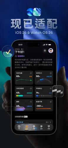 - 身体能量监测:独创”身体电量”系统,综合评估恢复状态、睡眠质量、压力水平等指标,实时显示用户能量储备