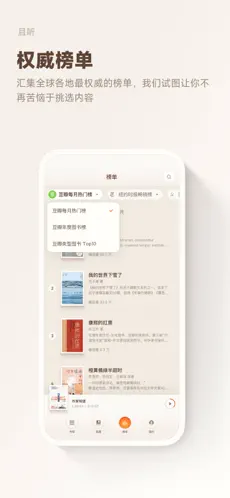 在信息爆炸的AI时代,如何高效吸收好书精华?且听APP给出了完美答案。它是一个专注于深度讲解与分析好书的语音听库,致力于通过“听书”这一高效方式,帮助用户在碎片化时间里系统获取知识。应用不仅提供丰富的深度内容,更以权威榜单为指南,助力用户轻松发现兴趣所在。