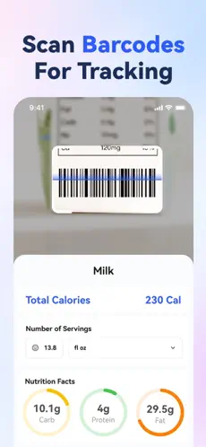 - 智能食物识别:支持拍照或扫描条形码,快速识别食物并自动计算其卡路里与营养构成。