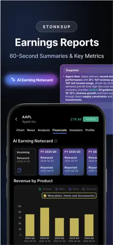 总而言之,StonksUp通过将强大的AI能力与全面的市场数据相结合,致力于成为投资者身边最可靠的数字分析伙伴,让复杂的市场分析变得简单直观,从而赋能每一位用户做出更自信、更理性的投资选择。