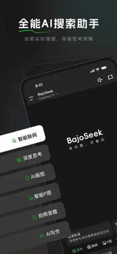 BajoSeek是奥瑞德光电旗下深圳智算力数字科技推出的智能搜索AI助手。它深度融合了先进的DeepSeek大模型,核心特色在于其“边想边搜”的深度洞察能力。这款应用不仅能进行实时联网搜索,还具备AI视觉识别、多模态交互(支持图片与文档解析)以及智能任务分解等强大功能,可以秒级提取网页关键信息并追踪复杂问题的处理进度。其内置的解题专家、办公助手、生活管家等场景化功能,全面覆盖学习、工作与生活超过3000个高频需求,致力于为用户提供精准、高效的智能问答体验。