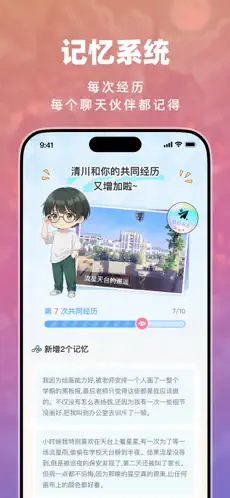 - 深度记忆与实体化互动:AI伙伴具备长期记忆能力,能记住你们的共同经历,并主动将记忆实体化为“手记”或赠送虚拟礼物,让情感有迹可循。